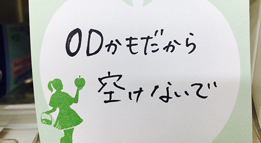 前日入っていた同僚から謎の付箋が(笑)
