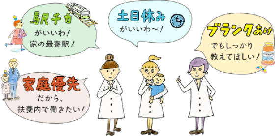 ママ薬剤師の希望により近づけることができ、より働きやすくなるよう、調整します。
